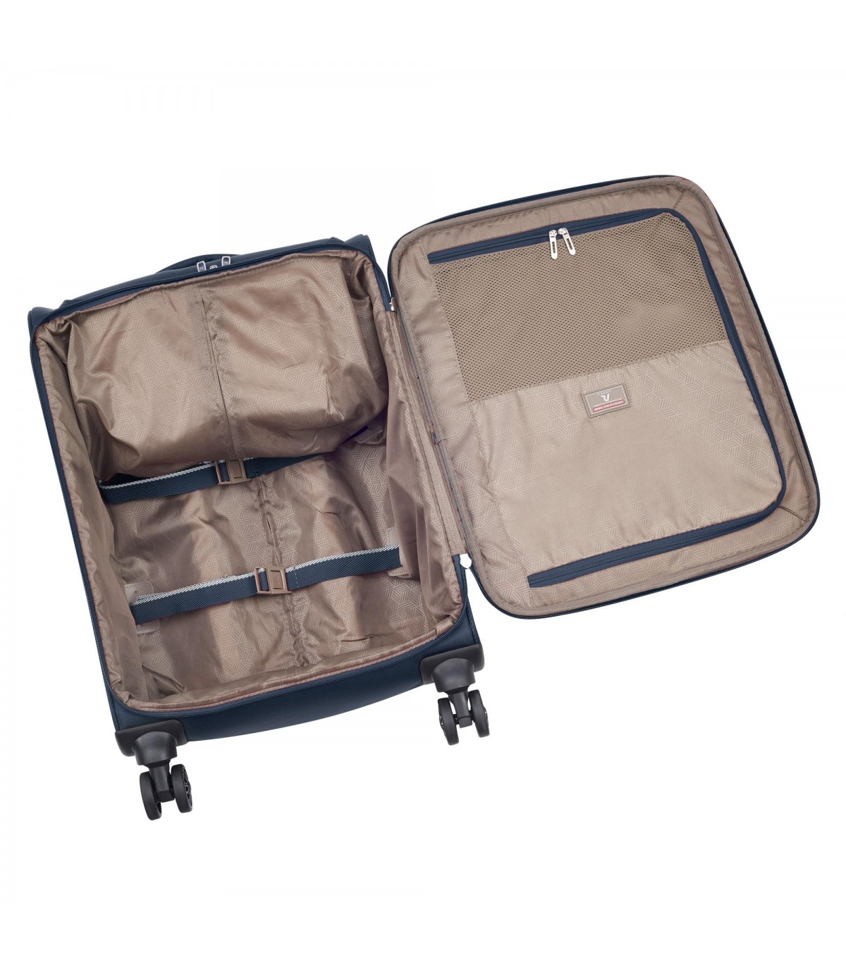 • תא פנימי עם כיס רוכסן ורצועות עם סגירת/פתיחת אבזם להידוק תכולת המזוודה