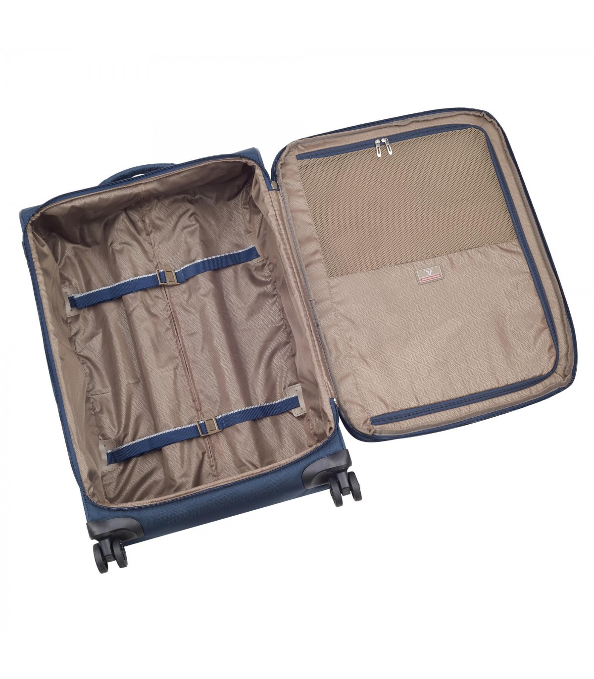 - תא פנימי עם כיס רוכסן ורצועות עם סגירת/פתיחת אבזם להידוק תכולת המזוודה
