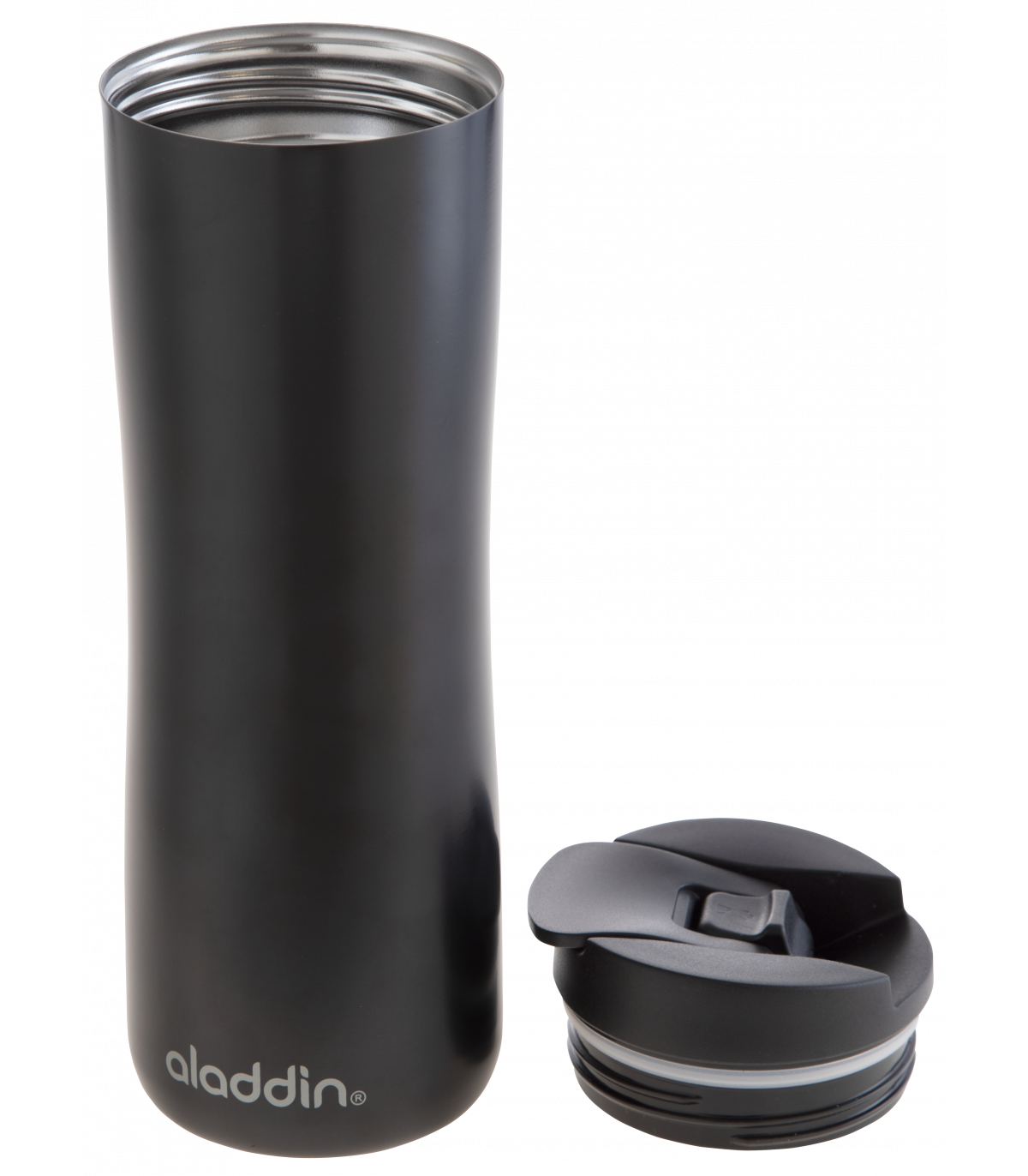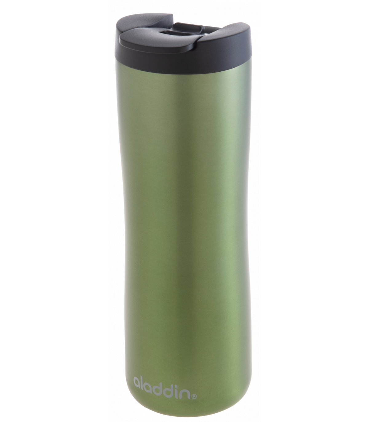 כוסות תרמיים מבית חברת ALADDIN - עשויים מ- 100% חומרים ממוחזרים, מבודדים חום וקור, עם מנגנון שמונע נזילות.
